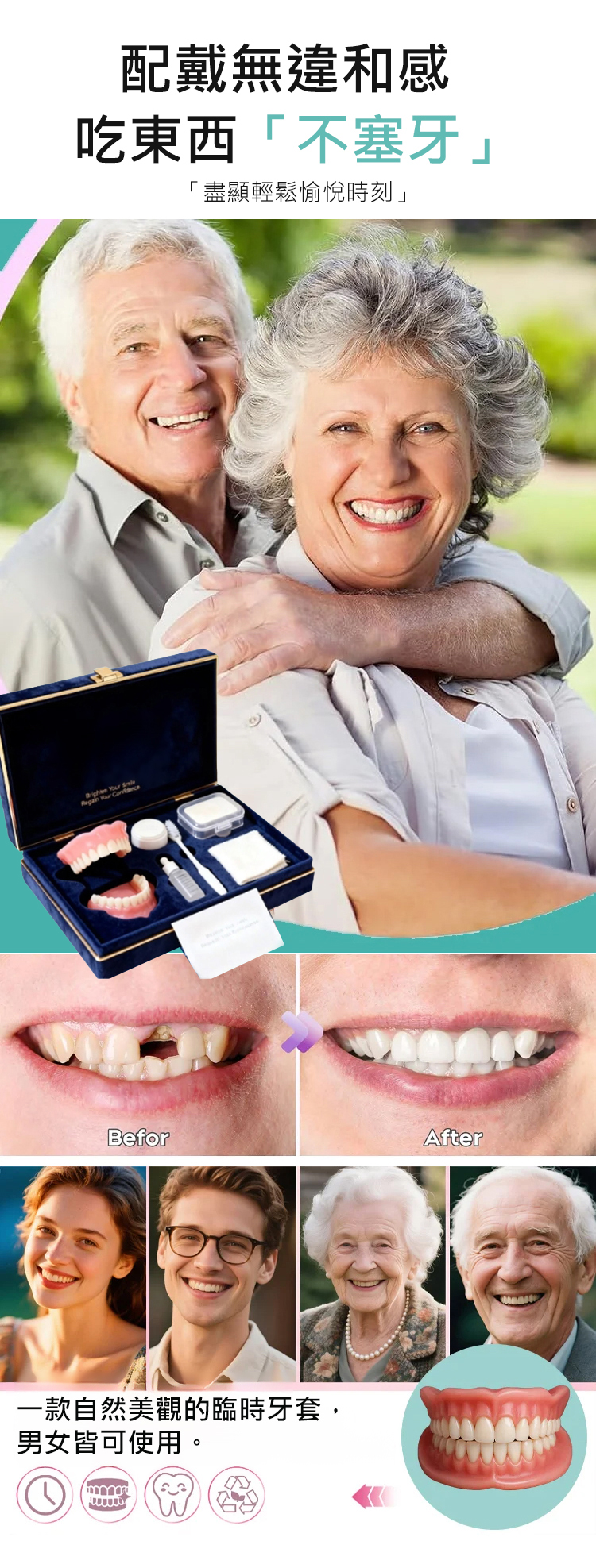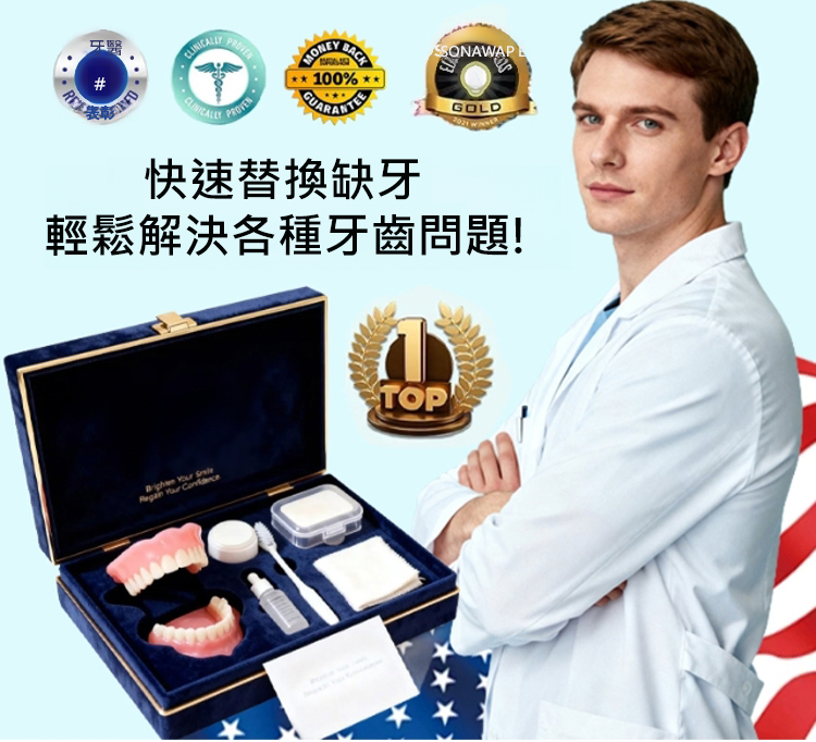 【美國製造,FDA認證】訂製全口義齒套裝