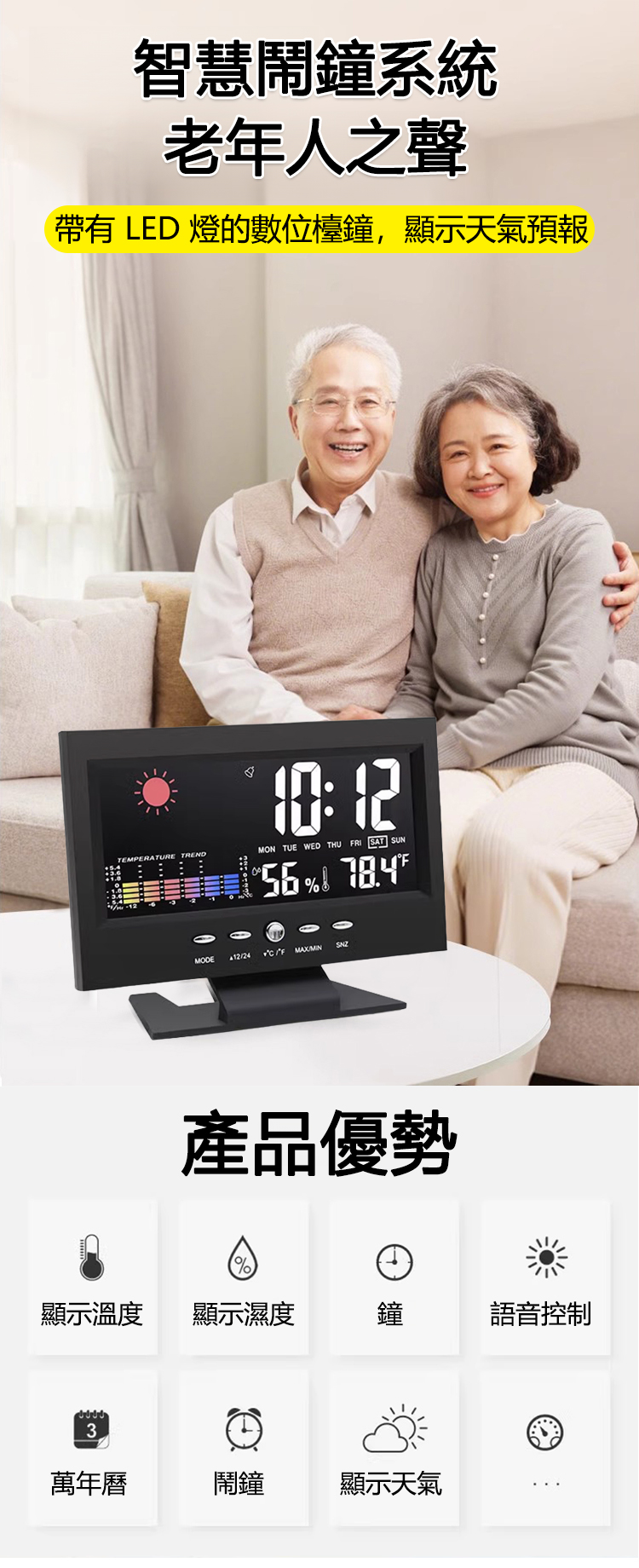 【一物多用】大屏氣象鬧鐘
